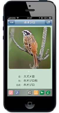 野鳥の写真、生態の解説、鳴き声表記などをすぐに見ることができるので、より理解が深まり覚えやすくなります。