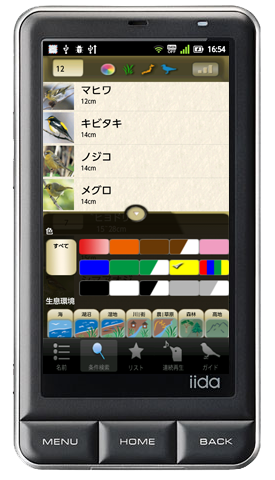 名前がわからない場合は、色、大きさ、生息環境、分布で検索することもできます。また、指定する検索条件が詳しくわからない場合でも、色や生息環境でおおまかに絞り込んで、検索結果を大きさ順に見ていくこともできます。